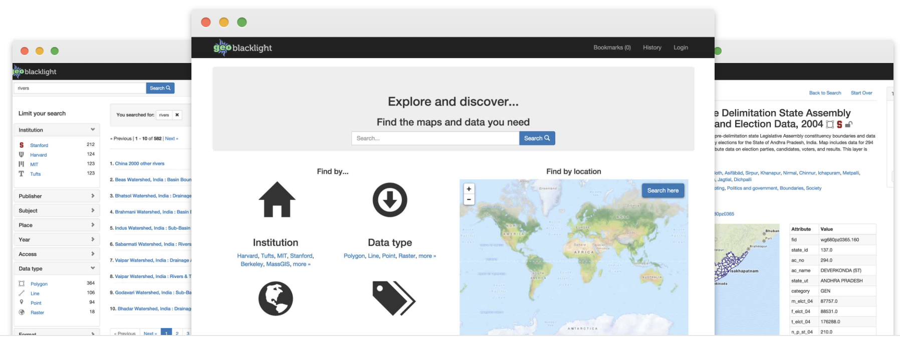 - GeoBlacklight provides a customizable platform for delivering geospatial information to end users